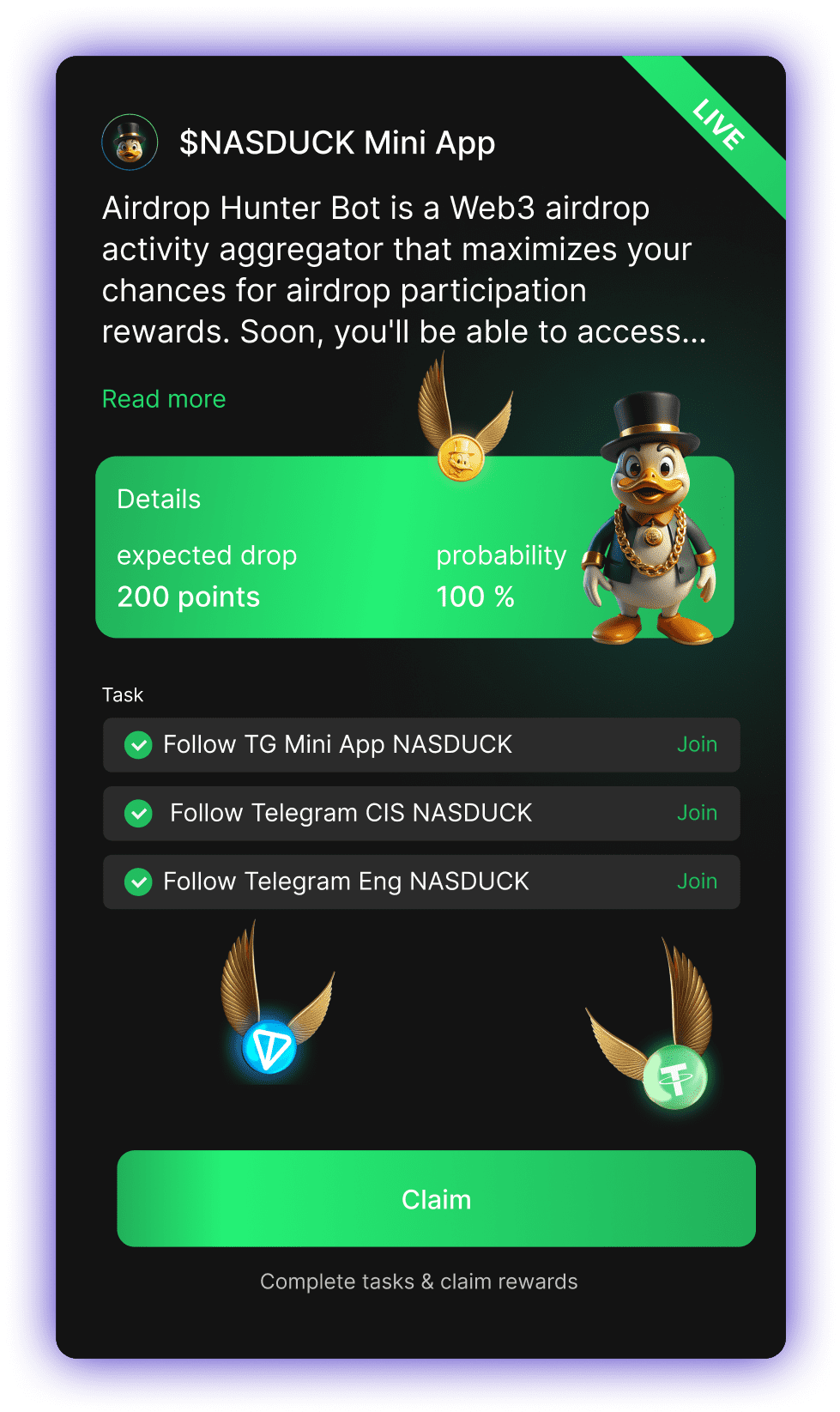 Compete for incredible prizes from AIRDROP HUNTER & Ton Foundation, including grants of up to 500K, user rewards, liquidity support for your token, and free Telegram Ads credits.